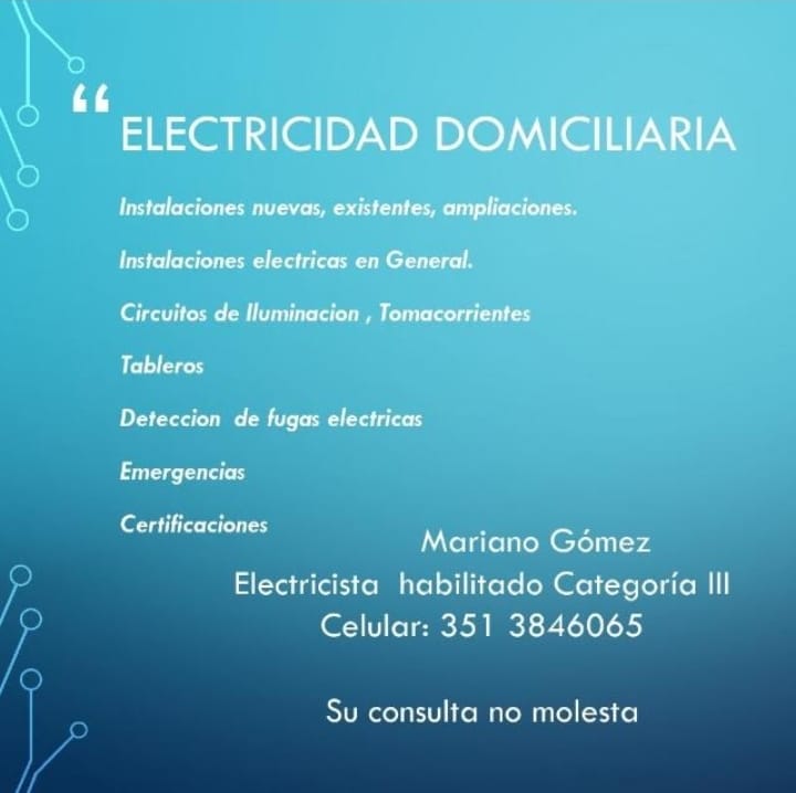 Somos electricistas de Córdoba habilitados en el Registro de Instaladores Electricistas de ERSeP.Hacé clic sobre la imagen del electricista para ver su oferta laboral o sobre el código QR para ver su habilitación ERSeP...